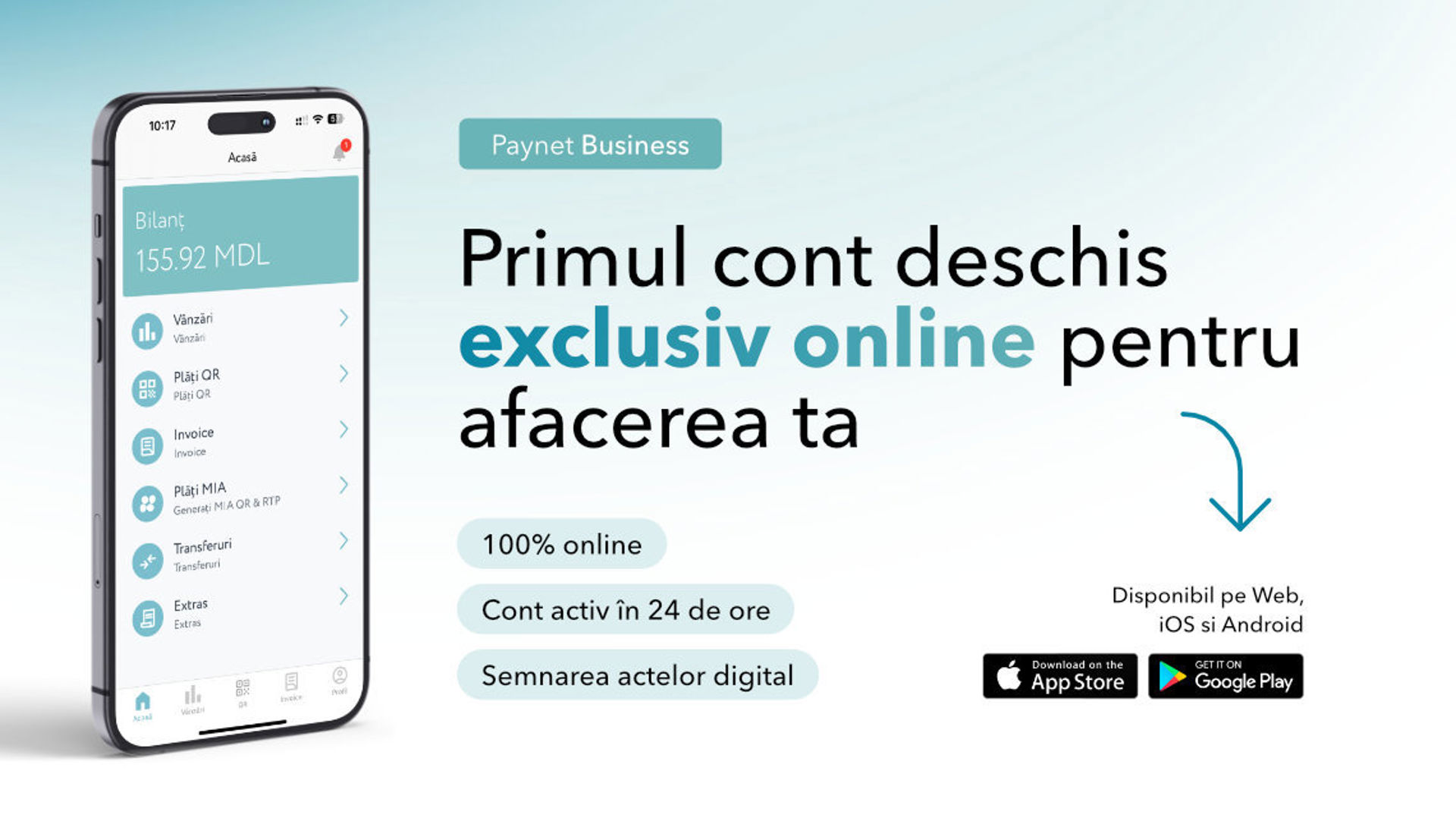 • Acces mobil prin aplicația Paynet Business (Web, iOS și Android), care permite gestionarea financiară din mers.