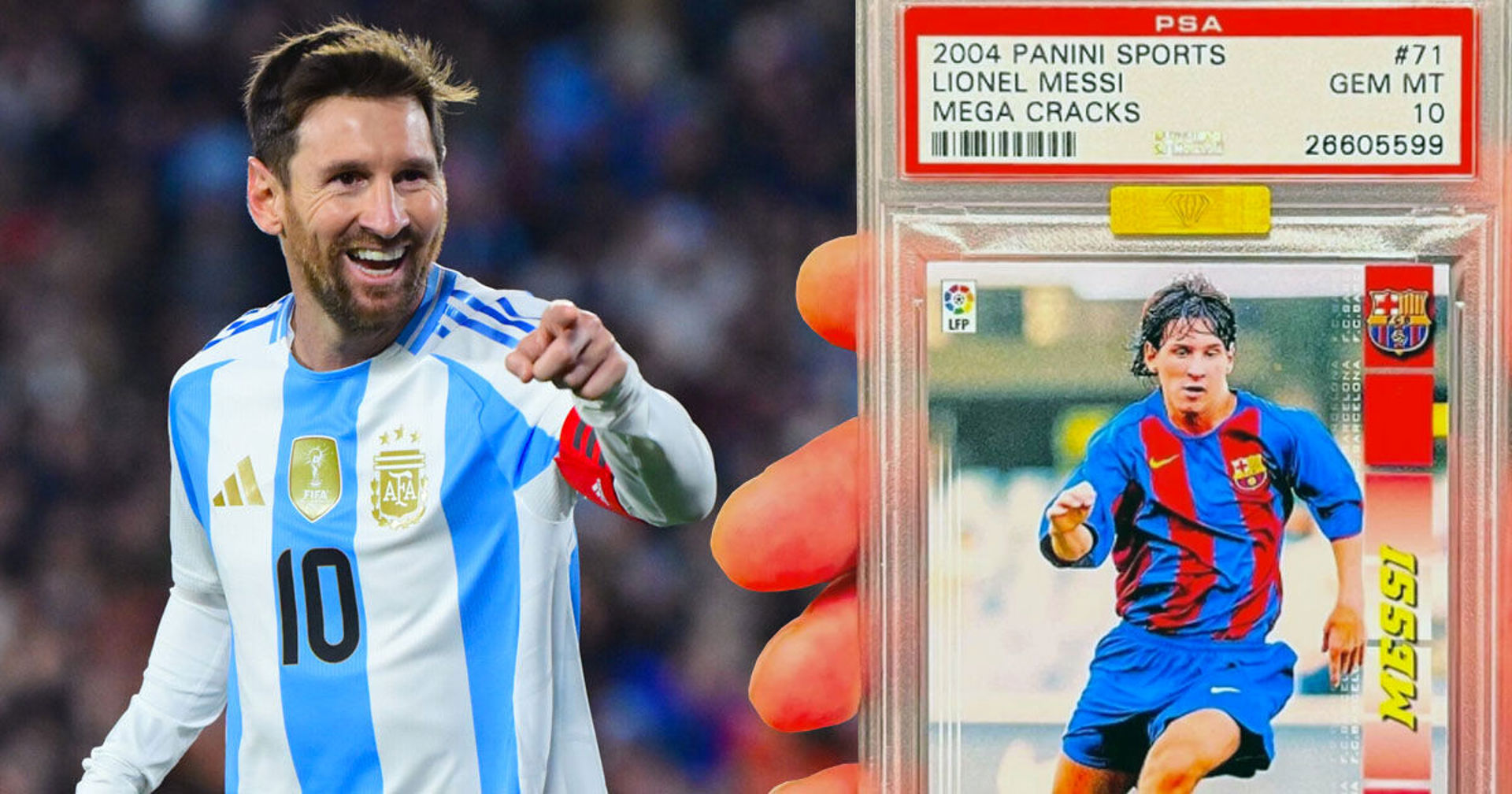 Cartea de colecție a lui Lionel Messi din setul Panini Mega Cracks 2004–2005, lansată în sezonul său de debut la „Barcelona”, a fost vândută pentru suma record de 1,5 milioane de dolari prin platforma online Fanatics Collect.