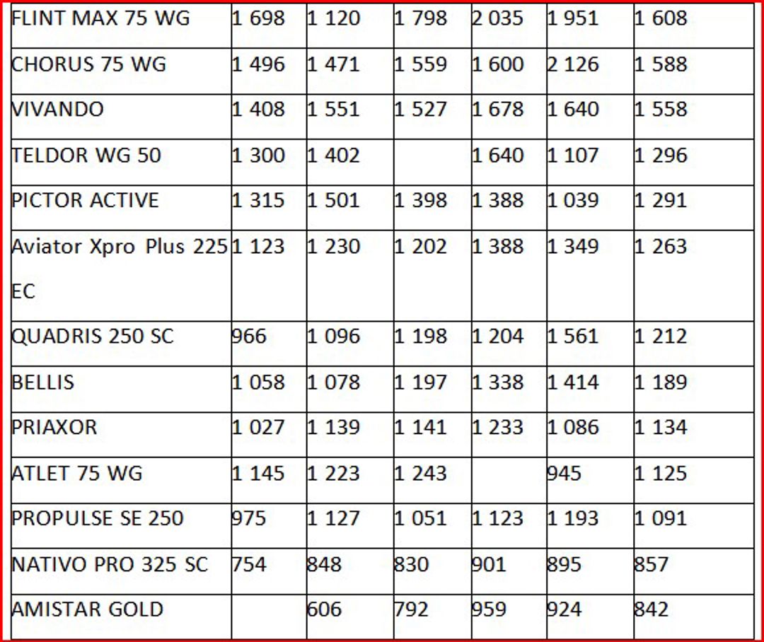 În ceea ce privește preparatele pentru tratarea frunzelor, piața oferă o gamă largă de opțiuni, cu prețuri variate și produse substituibile, deși substanțele active diferă. Cele mai scumpe fungicide la valoarea de import sunt Pictor Active (1 039 lei/kg-l) și Aviator Xpro Plus 225 EC (1 349 lei/kg-l). Pe piața internă, Aviator se comercializează la 85-91 euro/kg-l, iar aplicarea acestuia, la o doză de 0,6-0,8 l/ha, implică un cost de 1 200-1 300 lei/ha.