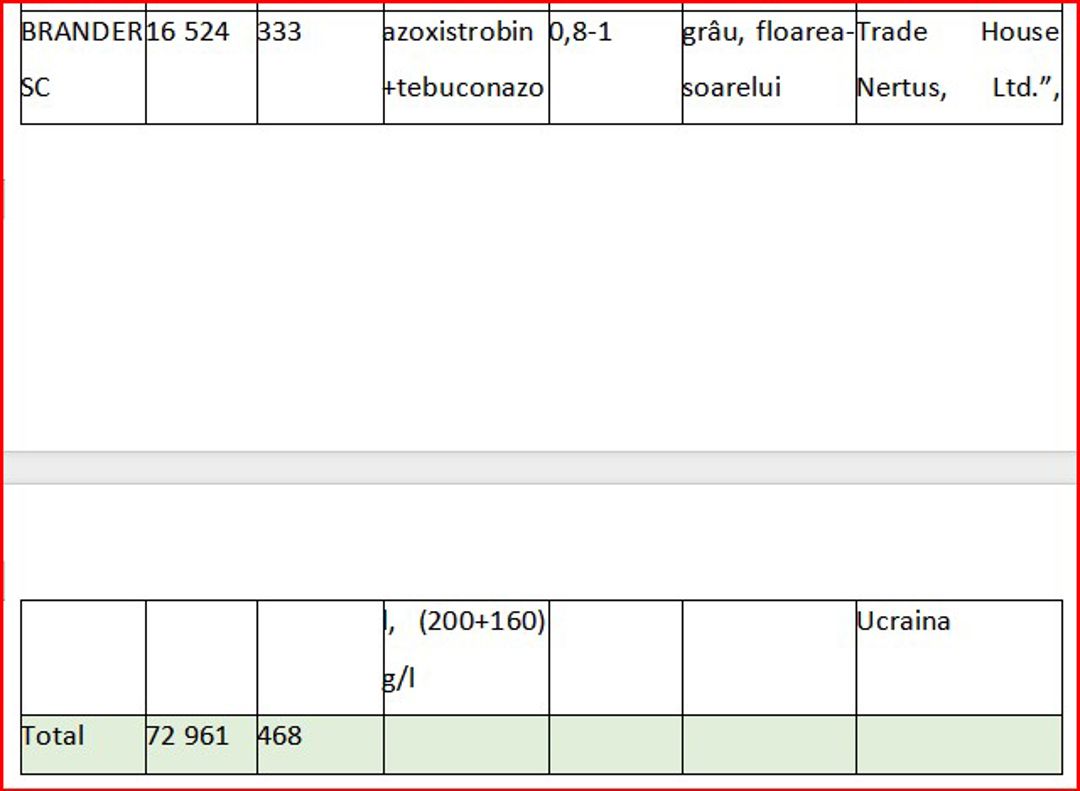 Combinația tebuconazol + azoxistrobin, regăsită în produsul Custodia 320 SC de la Adama, a înregistrat o creștere impresionantă. De la o valoare modestă de 84 mii lei în 2020, importurile au explodat la 24,3 milioane lei în 2022 și au continuat să crească, atingând 35,5 milioane lei în 2023. În 2024, în doar opt luni, această combinație a generat importuri de 28,6 milioane lei.