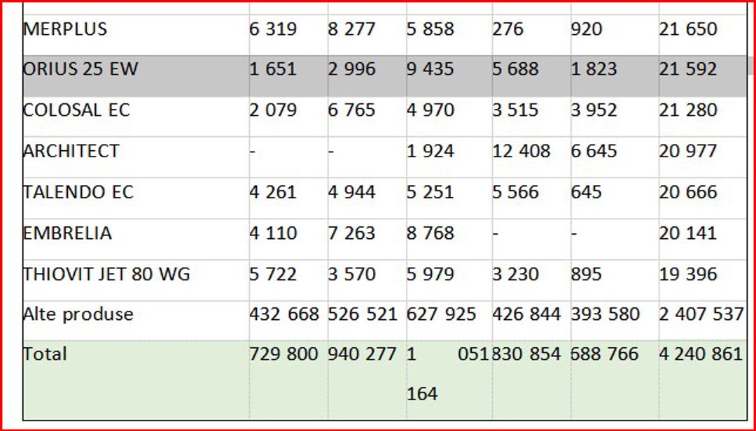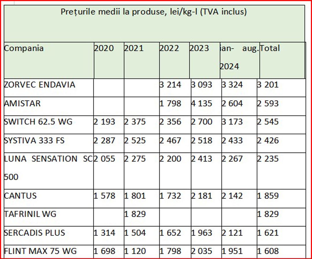 Cu toate acestea, analiza prețurilor medii de import arată că există posibilități de reducere a costurilor de producere a culturilor prin utilizarea unor produse mai accesibile. Totuți, majoritatea fermierilor tind să aleagă produse de nișă, fără analiza unor alternative mai econome. Totodată, prețurile medii de import sunt cu mult mai mici decât cele la care produsele sunt vândute pe piață, iar adaosurile comerciale ale distribuitorilor cresc costurile finale. De exemplu, produsul Orius 25 EW, importat la un preț mediu de 410 lei/kg-l, este vândut fermierilor cu prețuri situate între 27 și 30 de euro pe kilogram/litru, echivalentul a 526-585 lei/kg-l. Similar, Folicur SOLO 250 EW, care are un preț mediu de import de 584 lei/kg-l, este vândut cu 34-37 euro/kg-l, adică 663-722 lei/kg-l.