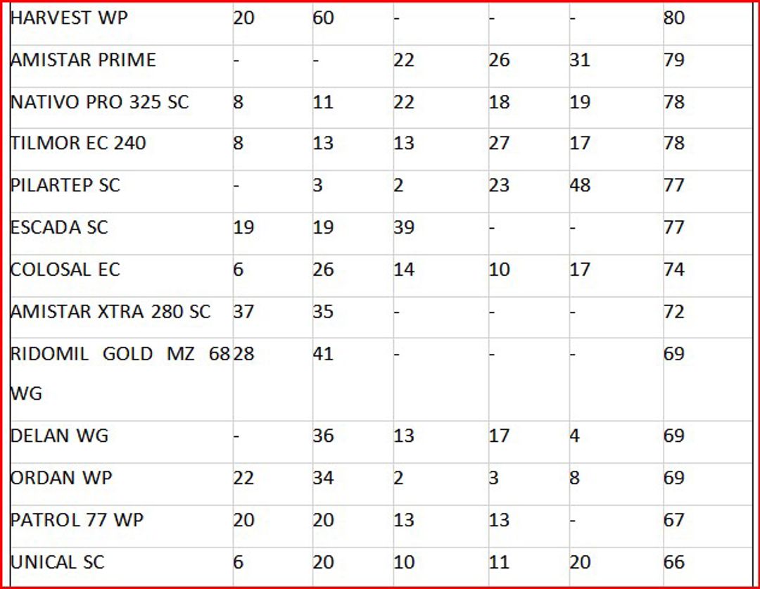 Produse precum Nativo Pro (preț import 895 lei/kg-l, preț de realizare 63-68 euro/l), Amistar Gold (preț import 924 lei/kg-l, preț de realizare 70-75 euro/l) și Madison SC 263 (preț import 785 lei/kg-l, preț de realizare 53-58 euro/l) oferă funcții similare, și sunt în nișa preparatelor scumpe. De asemenea, preparatul Architect, deși are un preț de import relativ scăzut (614 lei/kg în 2024), este vândut la un preț mult mai ridicat. Marjele brute de comercializare a preparatelor respective depășesc în mediu cu 40-45 % costurile de achiziție.