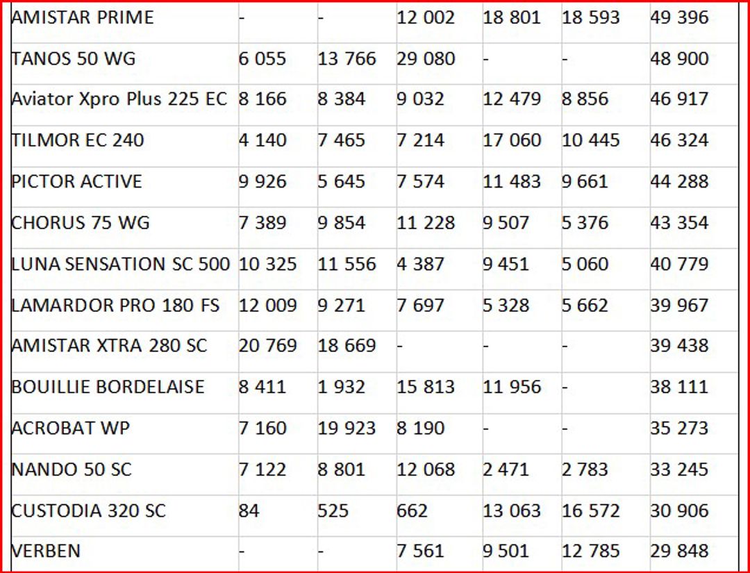De asemenea Amistar Prime a înregistrat o creștere pronunțată, importurile crescând de la 12 milioane lei în 2022 la 18,6 milioane lei doar în primele opt luni ale anului 2024. Prețul de realizare pe piață pentru acest produs atinge 70-75 euro/litru, iar tratamentul unui hectar de grâu sau orz implică un cost de 1 400-1 450 lei/ha. Marja brută pentru distribuitori este foarte înaltă, ajungând la 126-130 % în raport cu un preț de import de 603 lei/litru.