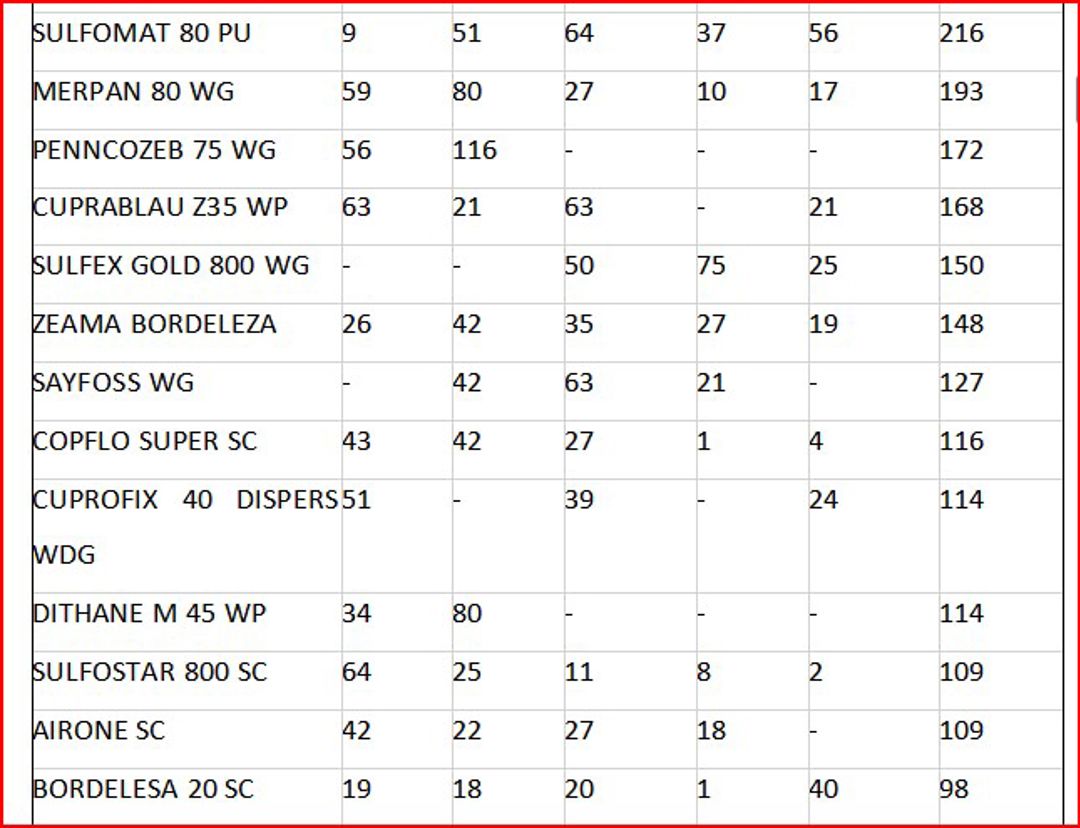 Cele mai mari cantități de fungicide importate în Republica Moldova sunt destinate legumiculturii și pomiculturii, cea mai însemnată pondere revenind produselor pe bază de cupru și sulf. Astfel, printre acestea, preparatele precum Cosavet 80 DF, Cuproxat SC, THIOVIT JET 80 WG, Azumo WG și Bouille Bordelaise ocupă poziții de top. Produsele pe bază de cupru, precum Cuproxat SC sau Bouille Bordelaise, sunt utilizate pentru prevenirea și controlul manei, moniliozei și altor boli specifice culturilor de legume, roșii, castraveți și pomilor fructiferi, meri, peri, viță de vie. Ele acționează prin distrugerea celulelor fungilor și bacteriilor, prevenind infectarea plantelor. De asemenea, fungicidele pe bază de sulf, cum este Sulfex Gold 800 WG, sunt eficiente împotriva făinării, o boală frecventă la legume, viță de vie și pomi fructiferi, având și un rol secundar în combaterea unor acarieni.