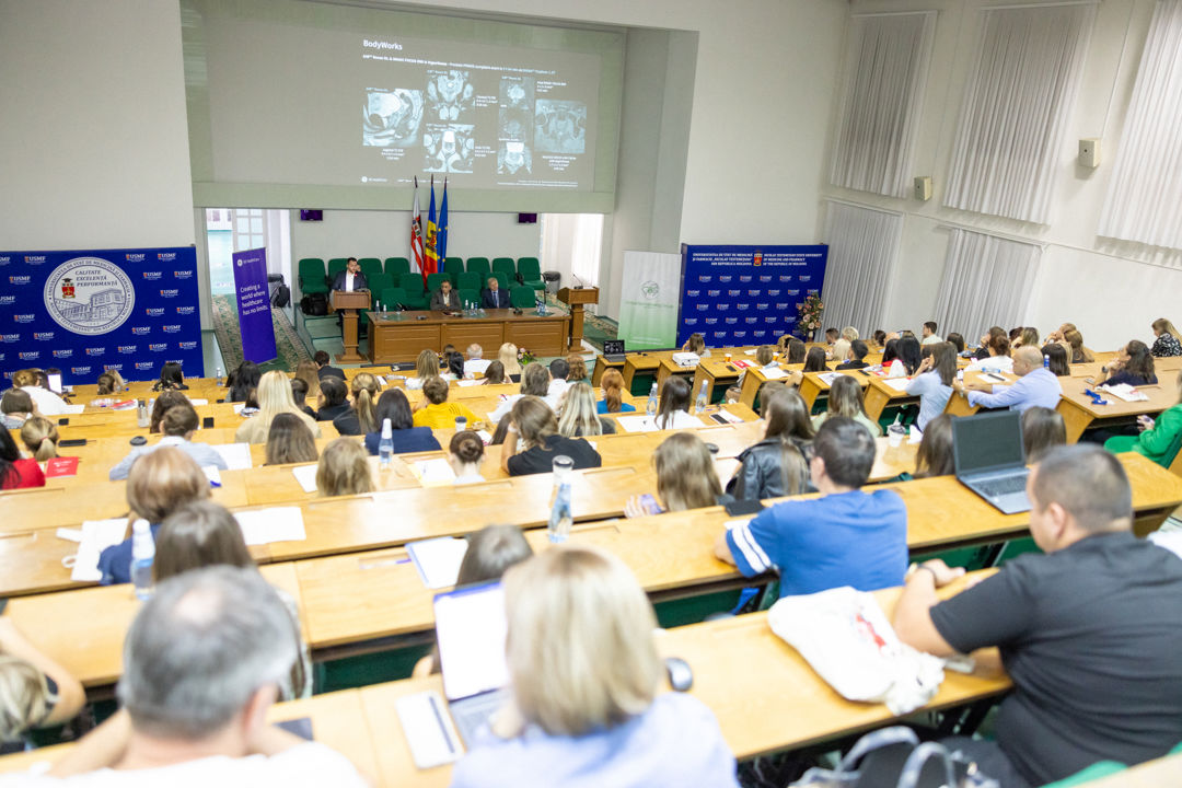 Медицинские центры по всей Молдове, оснащенные GBG Moldova новейшими технологиями GE, уже внедрили некоторые из этих передовых систем в свою повседневную деятельность, и многие центры лечения инсульта получают преимущества от точности и скорости оборудования с искусственным интеллектом. Эти инструменты автоматически сегментируют коронарные артерии, рассчитывают кальциевые баллы и оценивают ишемические зоны у пациентов с инсультом, обеспечивая своевременное и спасающее жизнь вмешательство. Рэзван Мокану, специалист по продажам продукции MR компании от GE HealthCare, в свою очередь, подчеркнул важнейшую роль искусственного интеллекта в повышении точности и эффективности диагностики при медицинской визуализации. Используя алгоритм реконструкции изображения AIR™ Recon DL, основанный на искусственном интеллекте, удается добиться значительного улучшения качества изображения при сокращении времени, необходимого для сканирования. Эта технология позволяет врачам уделять больше времени пациентам и справляться с большим объемом работы, что является важным преимуществом для Республики Молдова, где ощущается нехватка специализированного медицинского персонала. Интеграция искусственного интеллекта в медицинскую визуализацию представляет собой кардинальное изменение в предоставлении медицинских услуг. В Молдове эта трансформация уже идет полным ходом, во многом благодаря усилиям таких компаний, как GBG Moldova, которая с момента своего основания в 1995 году занимается оснащением больниц и клиник передовым медицинским оборудованием. По мере развития новых технологий мы можем ожидать еще более революционных достижений, которые еще больше повысят точность, эффективность и доступность медицинской визуализации, что в итоге приведет к улучшению ухода за пациентами и спасению жизней. Ежегодная конференция Общества радиологии и медицинской визуализации Республики Молдова состоялась 5 и 6 сентября в зале Сената Государственного университета медицины и фармации имени Николае Тестемицану (USMF). Научное мероприятие носило общее название "Радиоизображения в чрезвычайных ситуациях" и было организовано в партнерстве с Европейской школой радиологии ESOR.